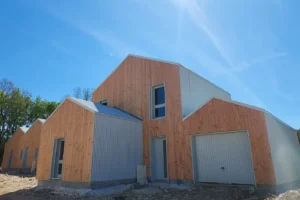 À Mornac, charmante commune située aux portes d’Angoulême, un programme résidentiel d’envergure arrive à son terme avec la livraison prochaine de 12 maisons en ossature bois. Un chantier exemplaire qui illustre l’alliance réussie entre architecture contemporaine, performance environnementale et savoir-faire bois.