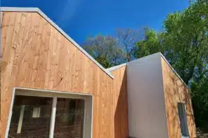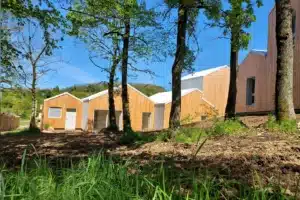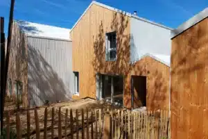 Côté performances, les logements bénéficient d’une isolation composée de 160 mm de ouate de cellulose insufflée, complétée par 40 mm de fibre de bois, garantissant à la fois efficacité énergétique, confort intérieur et faible impact environnemental.