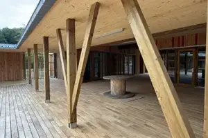 Nous avons réalisé le macro-lot comprenant l’ossature bois, la charpente, le bardage ainsi que les menuiseries extérieures en bois.