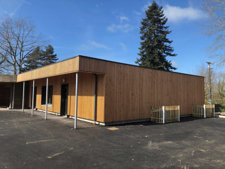 Charpente traditionnelle et bardage bois en Douglas pour l’école de Bosmie l’Aiguille (87).